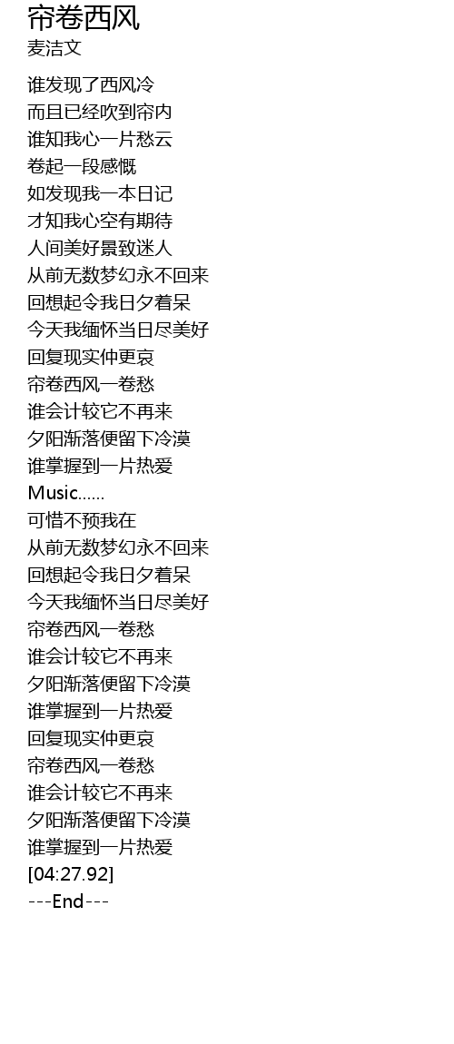 | [03:32.17] | 帘卷西风一卷愁 |
