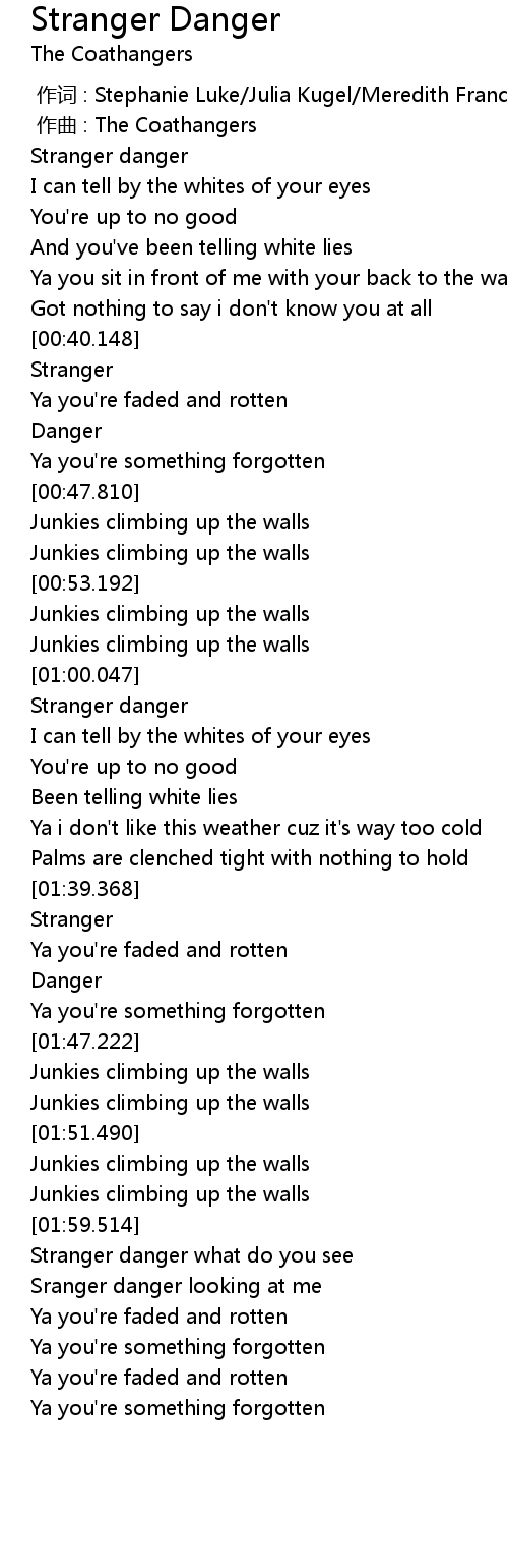 | [02:19.201] | Sranger danger looking at me |