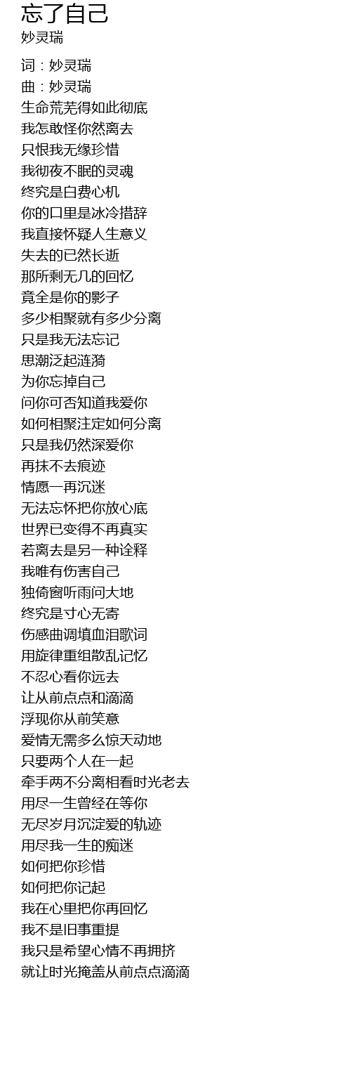 | [01:53.02] | wèi nǐ wàng diào zì jǐ |