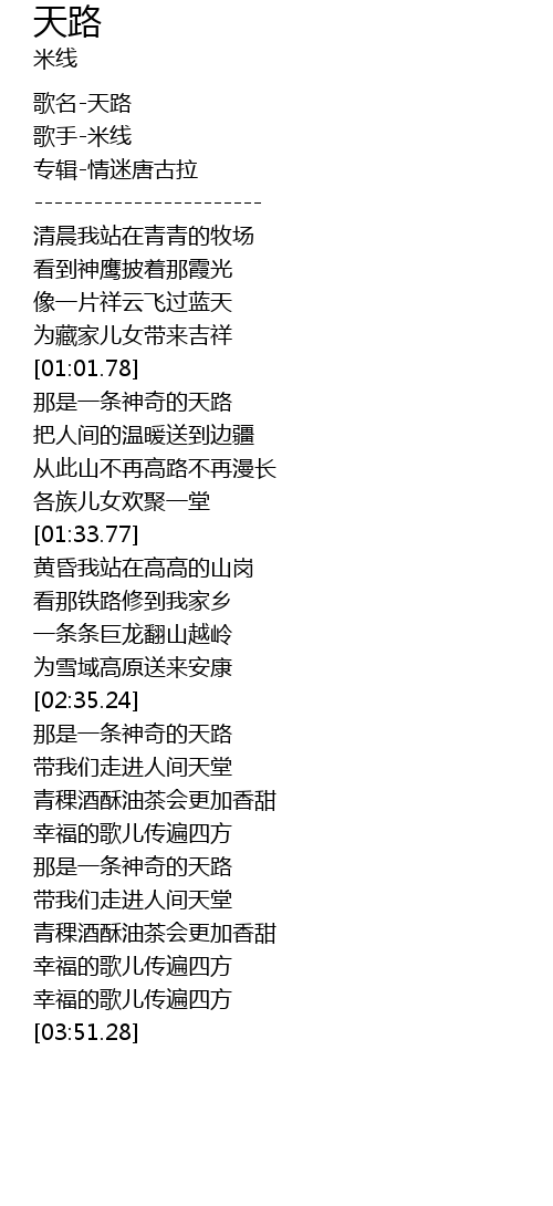 [01:02.92] nà shi yī tiáo shén qí de tiān lù