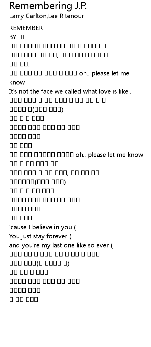 | Song | Remembering J.P. |
