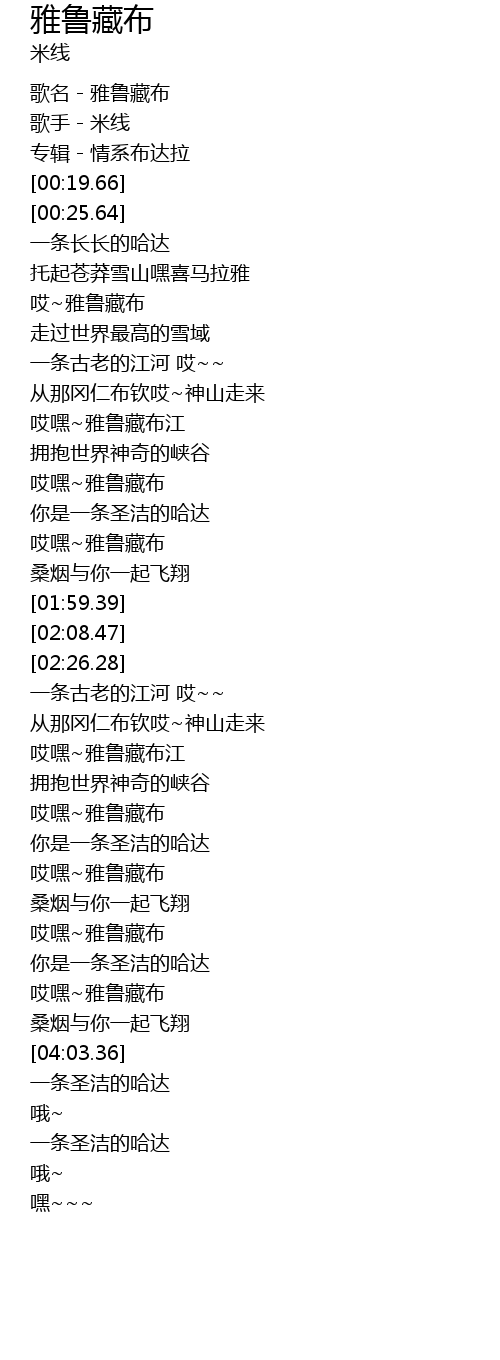 | [03:31.90] | 哎嘿~雅鲁藏布 |