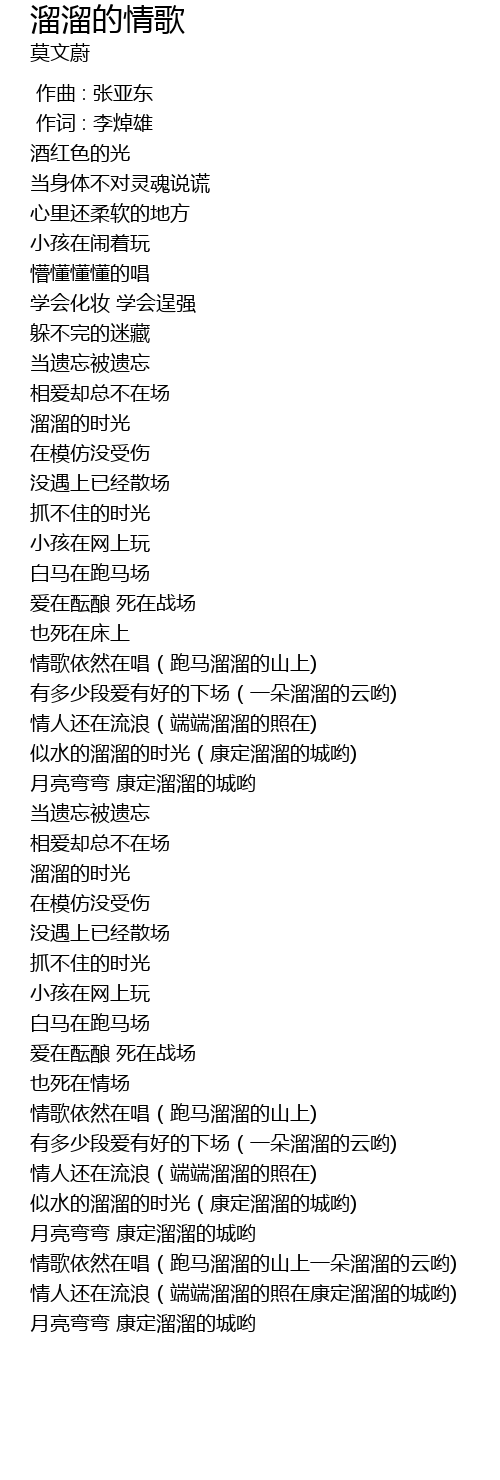 | [01:33.908] | 似水的溜溜的时光(康定溜溜的城哟) |