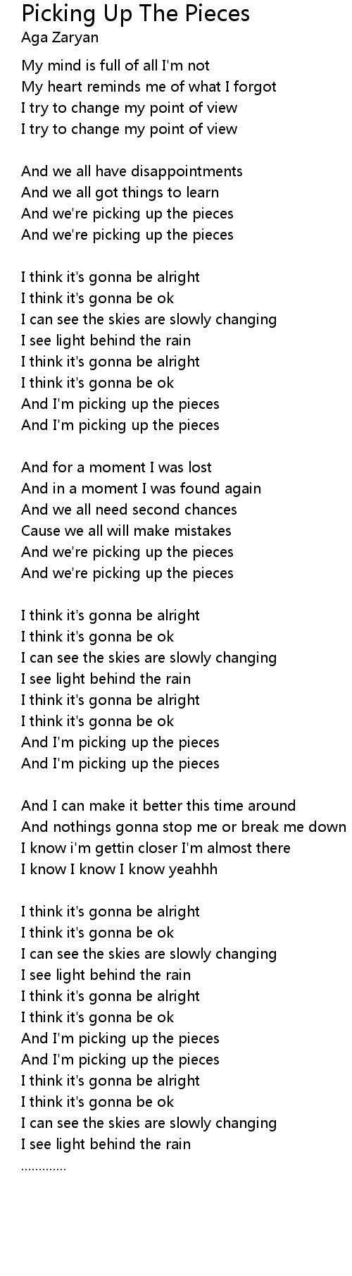 And I'm picking up the pieces |