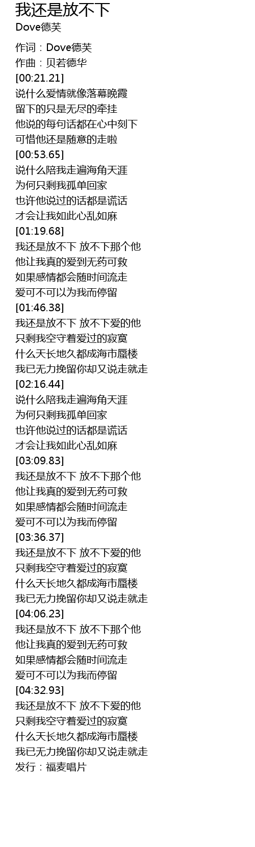 | [03:36.81] | 我还是放不下 放不下爱的他 |