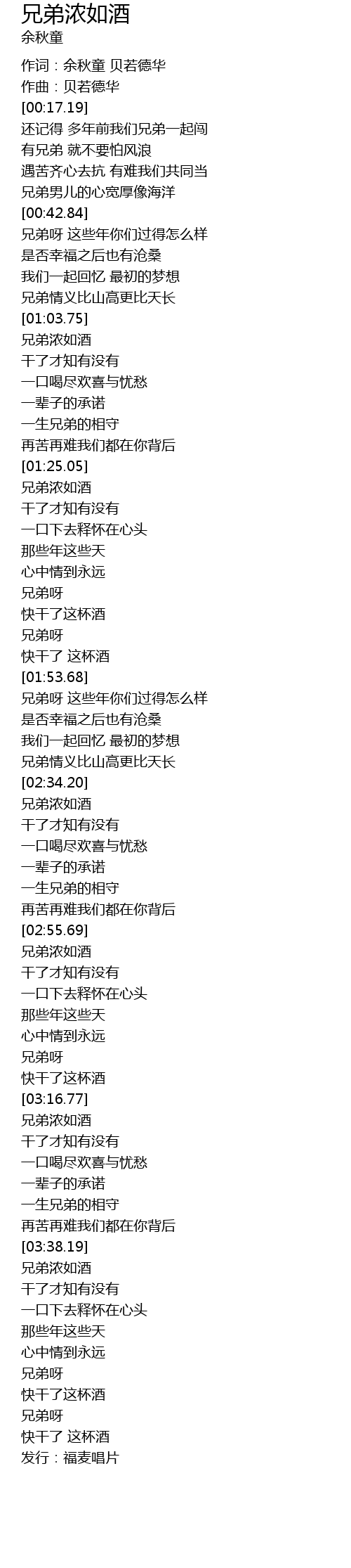 | [03:17.41] | xiōng dì nóng rú jiǔ |