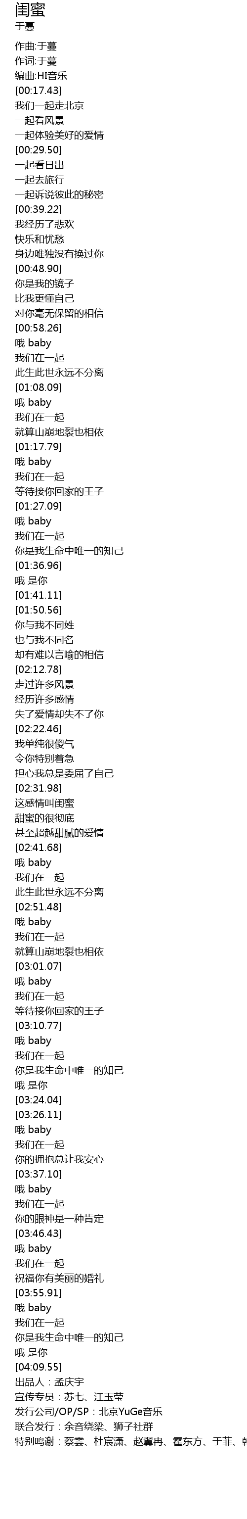 | [04:12.55] | 发行公司/OP/SP:北京YuGe音乐 |