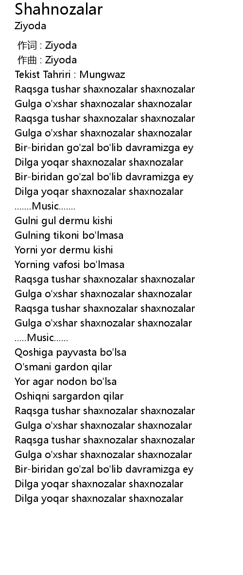 | [00:01.000] | zuò qǔ : Ziyoda |