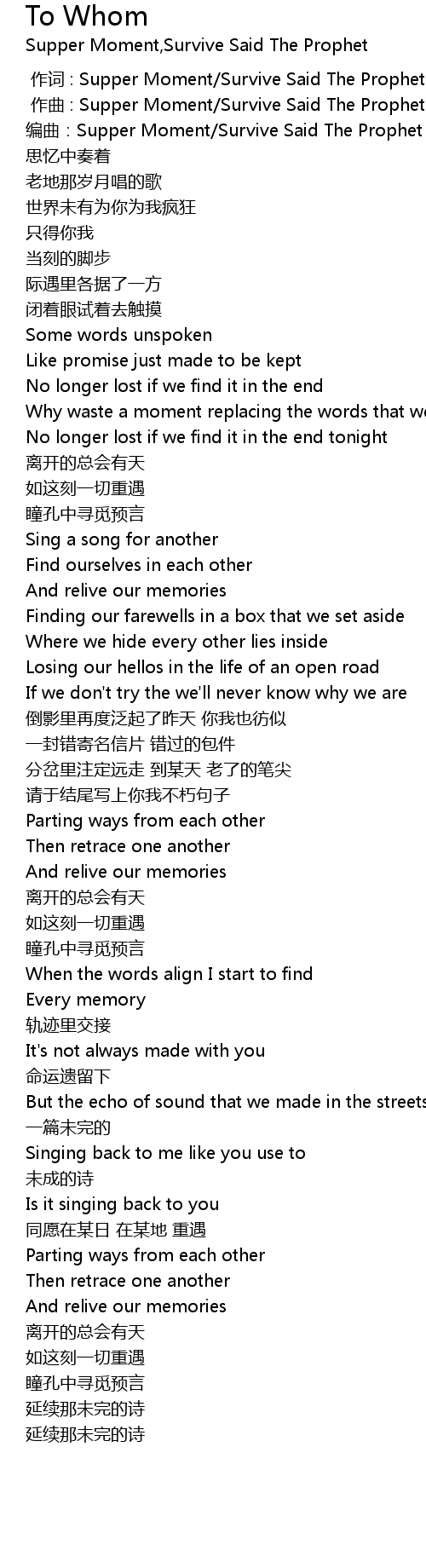 | [00:00.000] | 作词 : Supper Moment/Survive Said The Prophet |