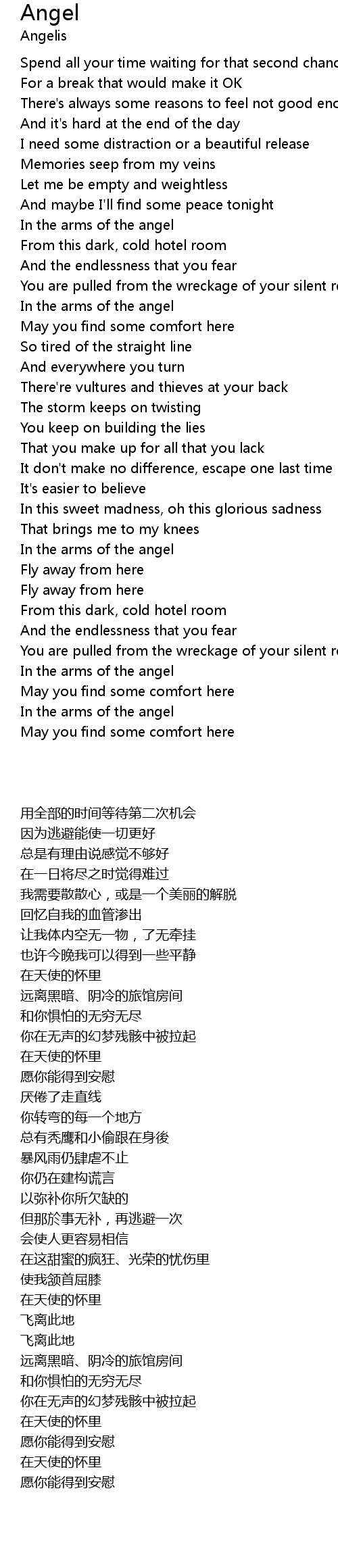 | [01:38.000] | In the arms of the angel |
