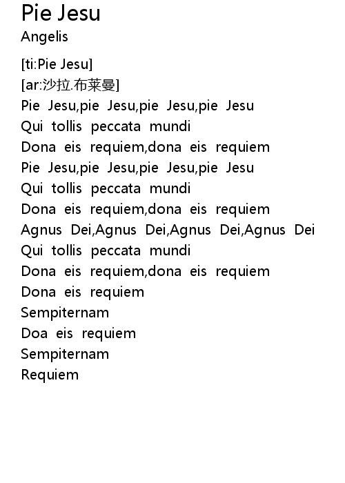 | [01:01.803] | Pie Jesu,pie Jesu,pie Jesu,pie Jesu |