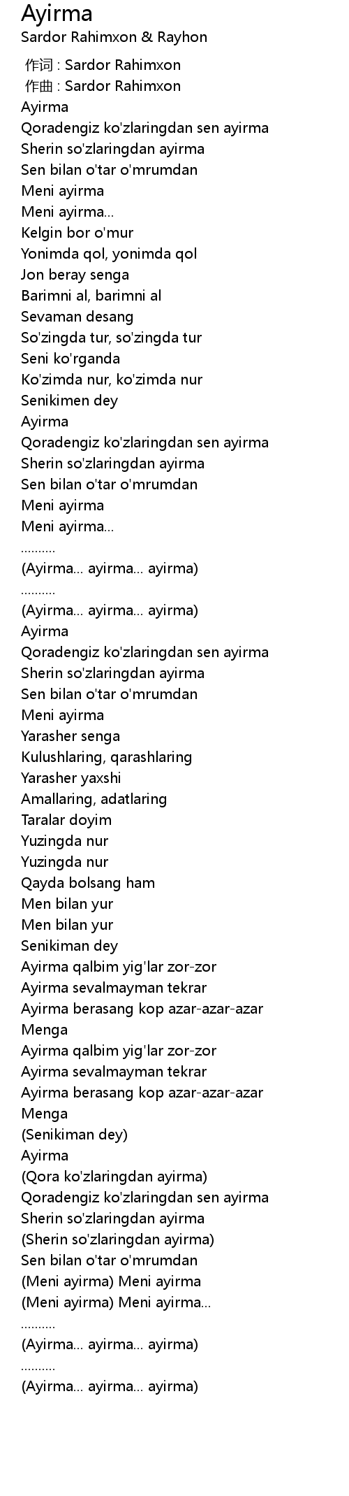 | [00:00.000] | 作词 : Sardor Rahimxon |