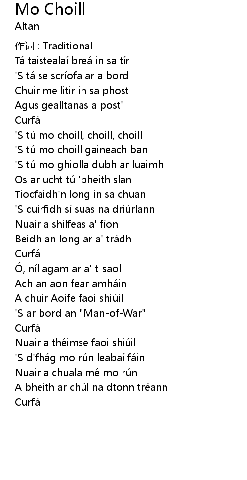 | 'S tú mo ghiolla dubh ar luaimh | |