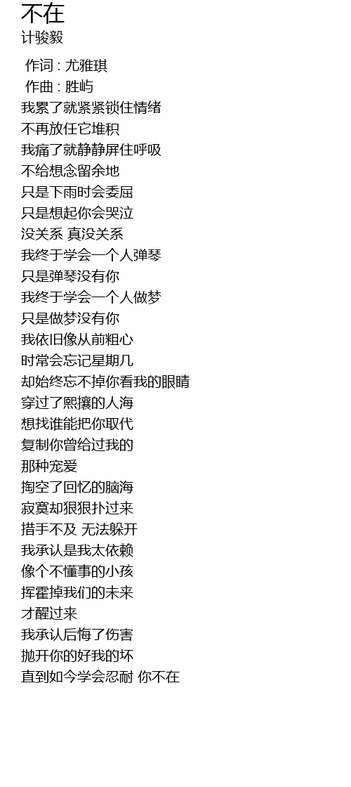 | [00:41.850] | zhǐ shì tán qín méi yǒu nǐ |