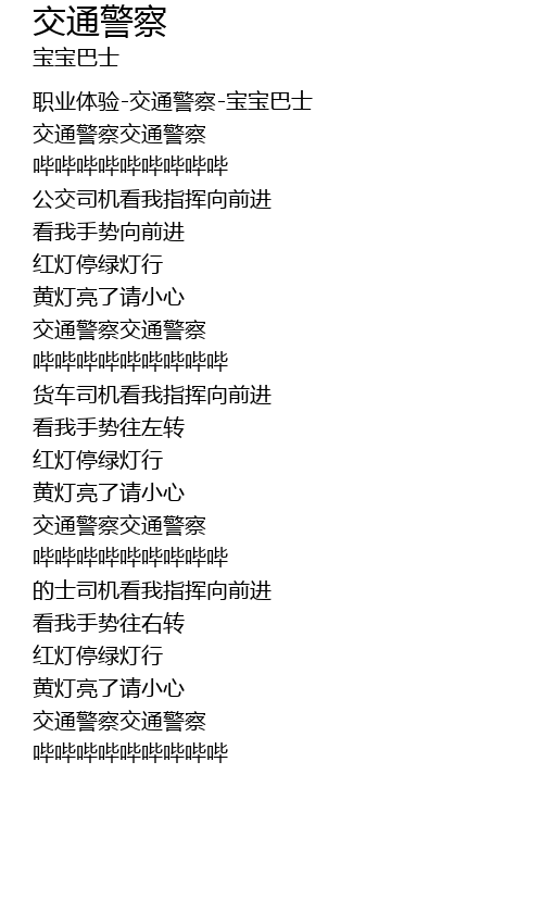 | [00:02.00] | 职业体验-交通警察-宝宝巴士 |