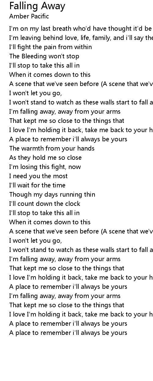 I'm falling away, away from your arms |