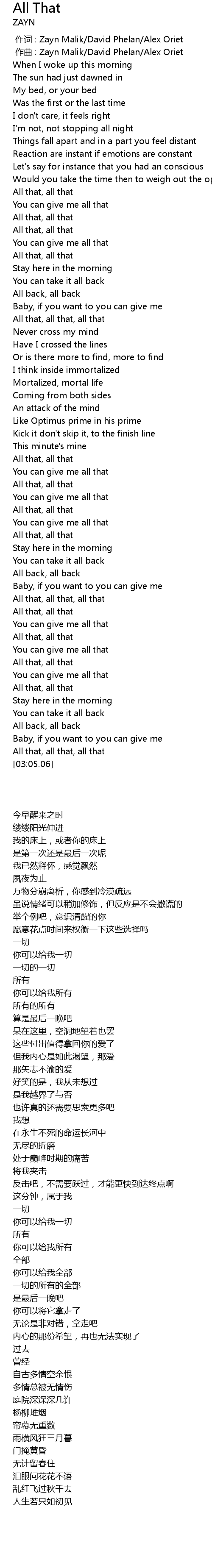 | [00:01.000] | zuo qu : Zayn Malik David Phelan Alex Oriet |