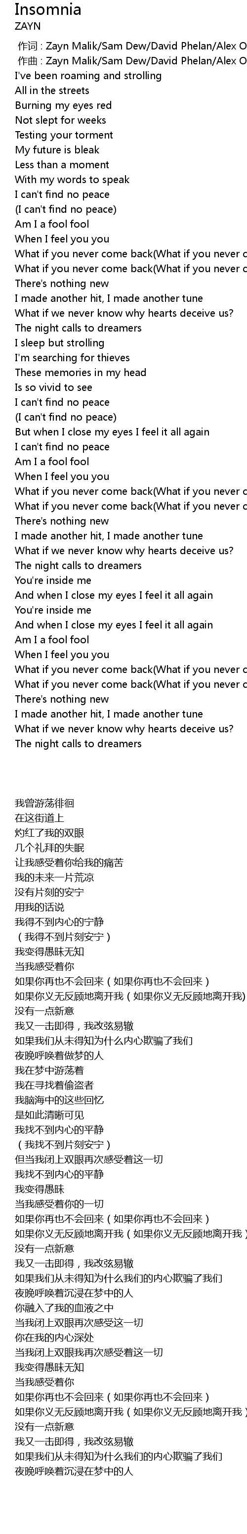 | [00:01.000] | zuo qu : Zayn Malik Sam Dew David Phelan Alex Oriet |