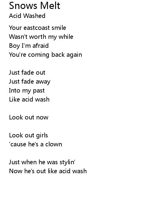 | Now he's out like acid wash |