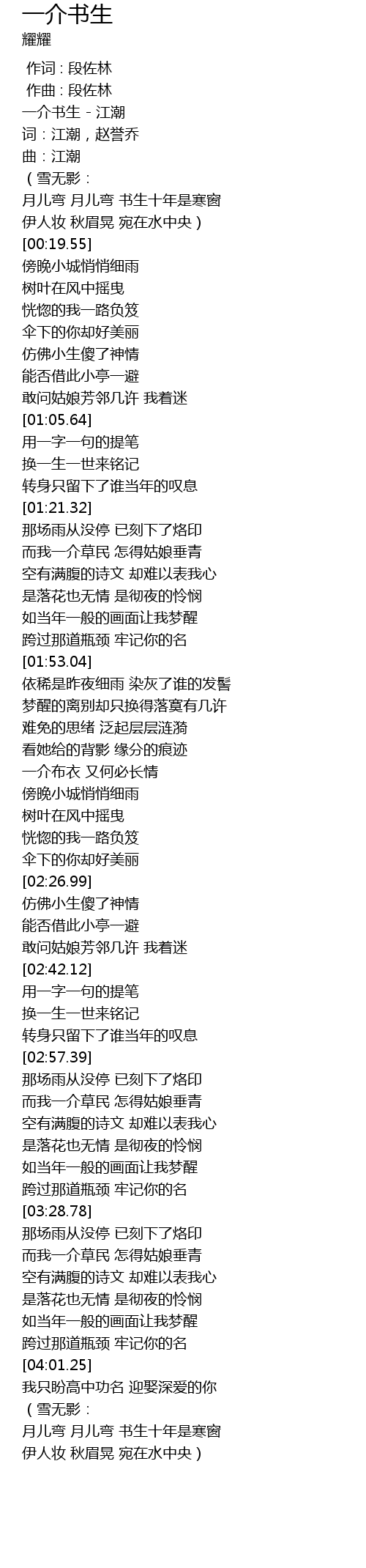 | [00:00.00] | 一介书生 - 江潮 |