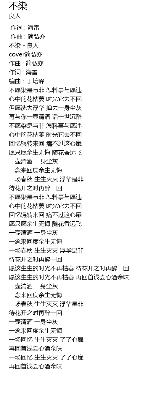 | [00:05.405] | 不染 - 良人 |