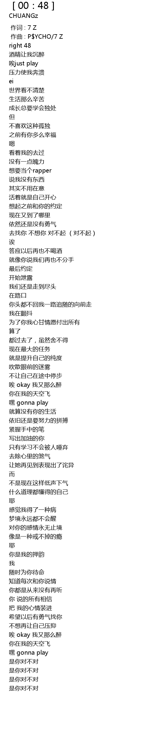 | [00:42.095] | qu zhao ni bu xiang ni dui bu qi dui bu qi |