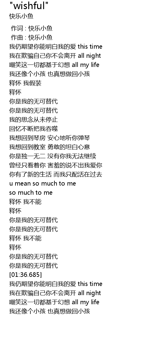 | [00:00.000] | 作词 : 快乐小鱼 |