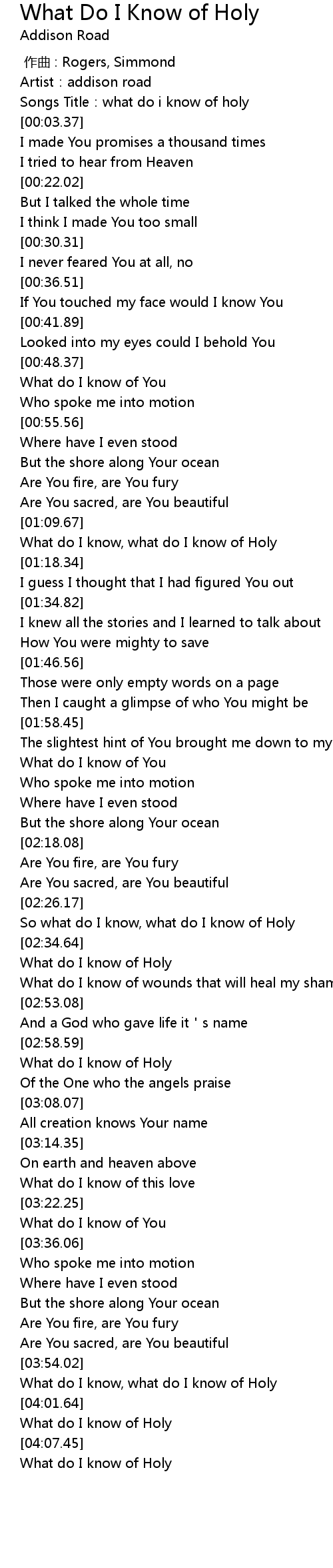 | [02:28.18] | So what do I know, what do I know of Holy |