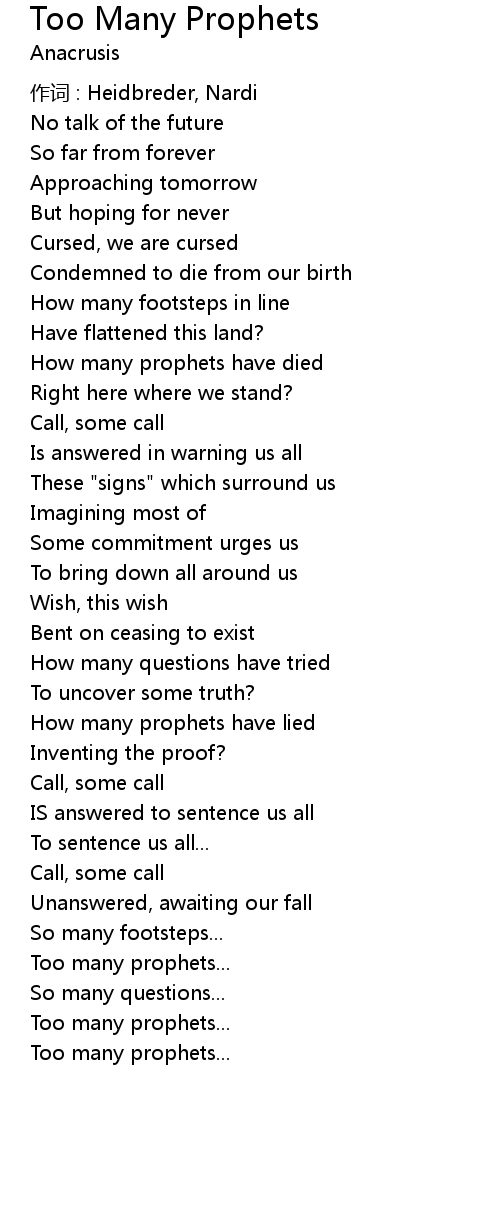 | Song | Too Many Prophets |