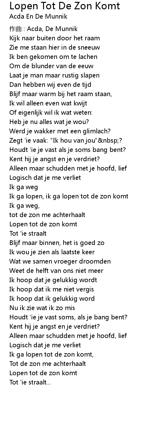 | Ik ga lopen, ik ga lopen tot de zon komt | |