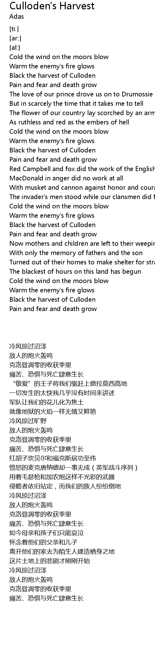 | [00:51.60] | The love of our prince drove us on to Drumossie |