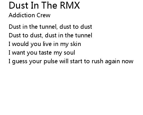 | Dust to dust, dust in the tunnel | |
