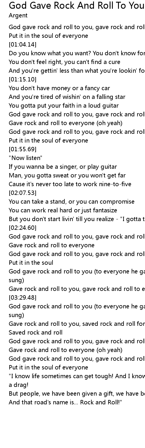 God gave rock and roll to you (to everyone he gave the song to be sung) |