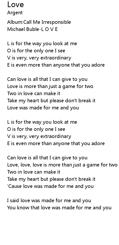 | 'Cause love was made for me and you | |