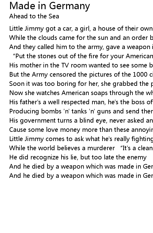 | Producing bombs ' n' tanks ' n' guns and send them straight to the enemy | |