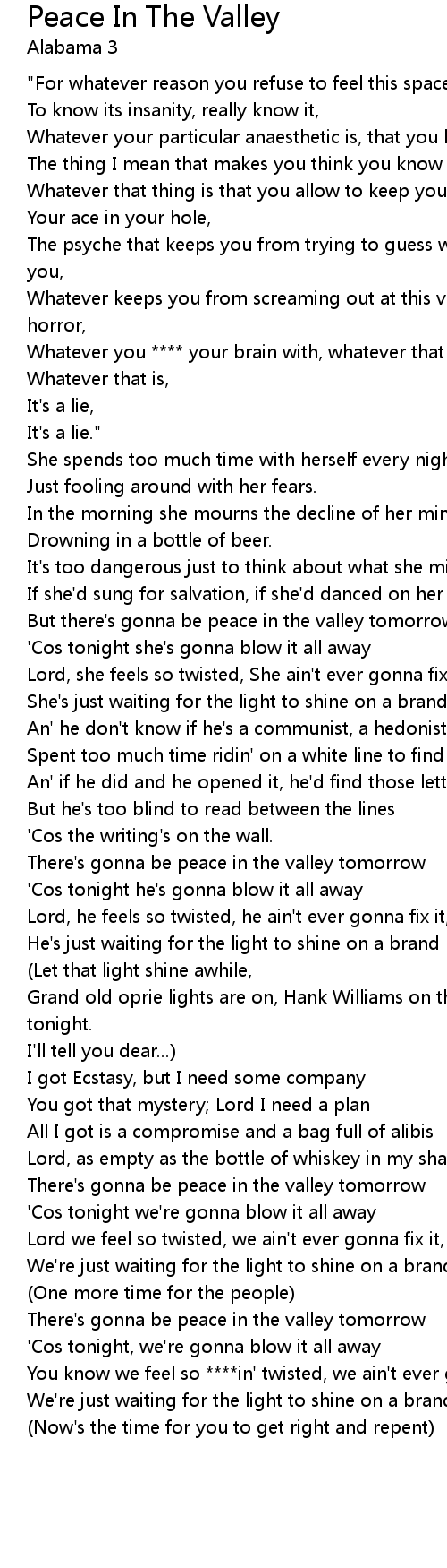 There's gonna be peace in the valley tomorrow |