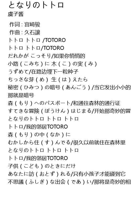 | [00:04.204] | トトロ トトロ /TOTORO |