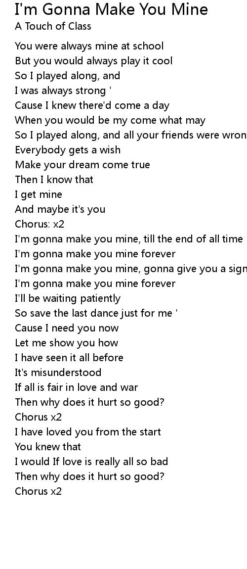 I'm gonna make you mine, gonna give you a sign |