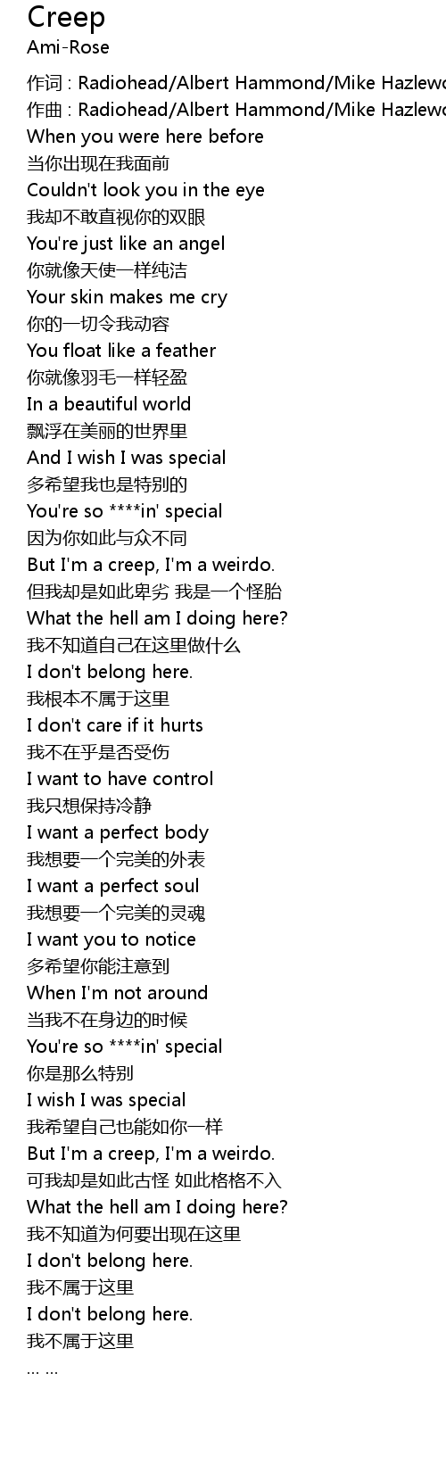 | 作词 : Radiohead/Albert Hammond/Mike Hazlewood | |