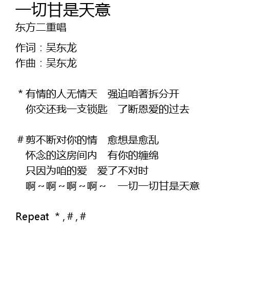 | 啊~啊~啊~啊~ 一切一切甘是天意 | |
