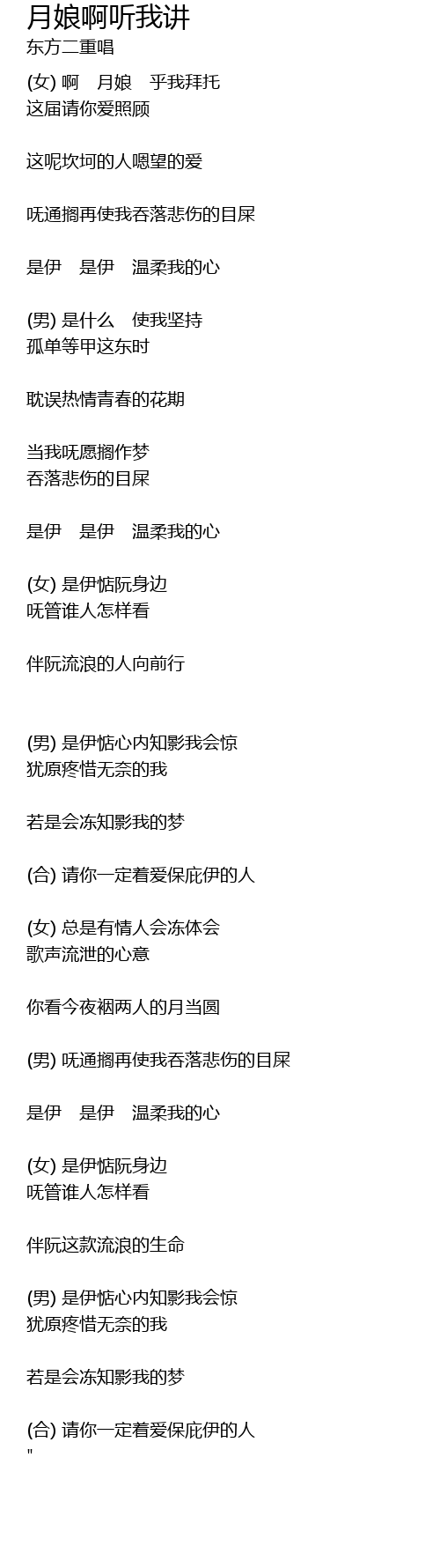 | (男) 呒通搁再使我吞落悲伤的目屎 | |