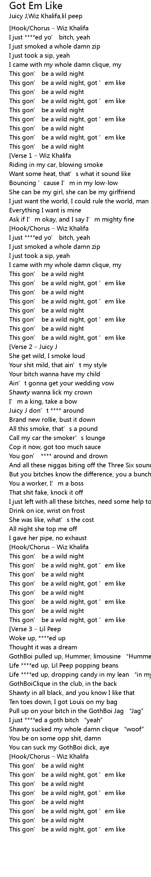 | [02:52.40] | This gon’ be a wild night, got ’em like |