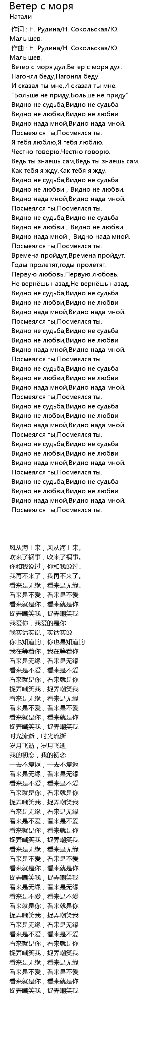 作词 : Н. Рудина/Н. Сокольская/Ю. Малышев. |