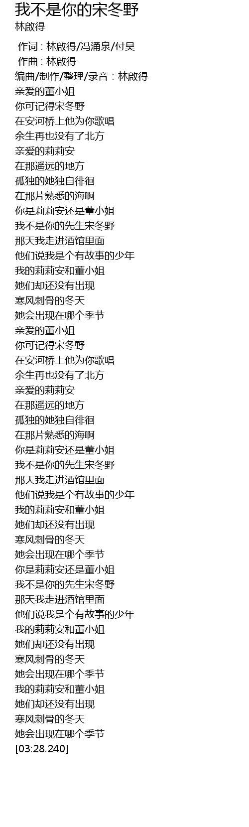 | [02:45.660] | 我不是你的先生宋冬野 |