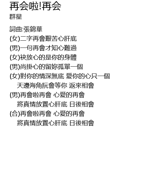 | (男)再會啦再會 心愛的再會 | |