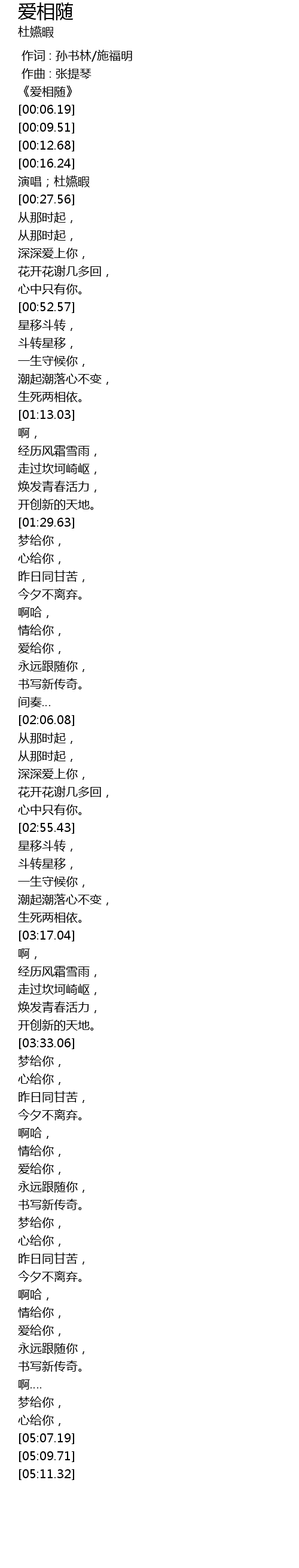 | [03:57.01] | yǒng yuǎn gēn suí nǐ, |