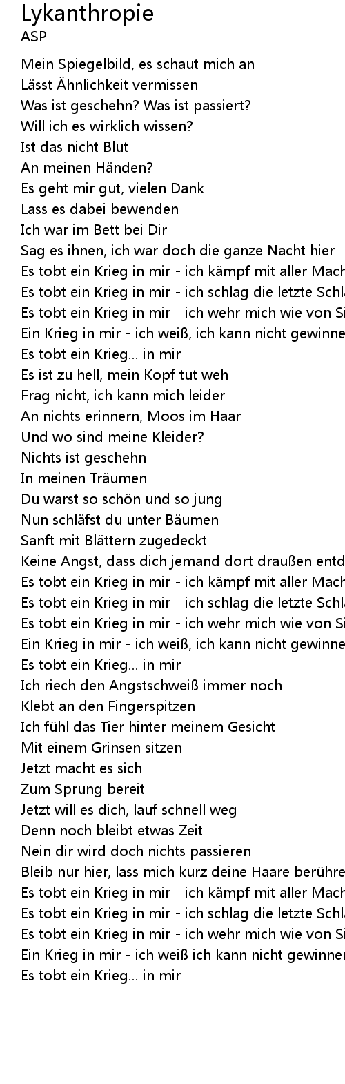 | Es tobt ein Krieg in mir ich k mpf mit aller Macht | |