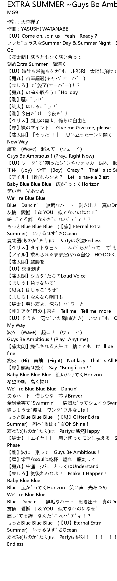| Song | EXTRA SUMMER ~Guys Be Ambitious!~ |