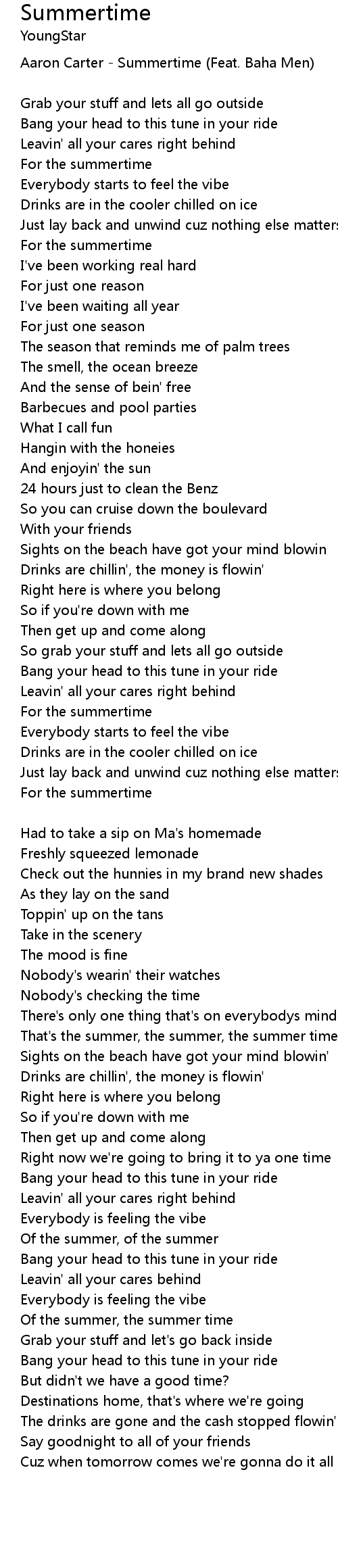 | Aaron Carter - Summertime (Feat. Baha Men) | |