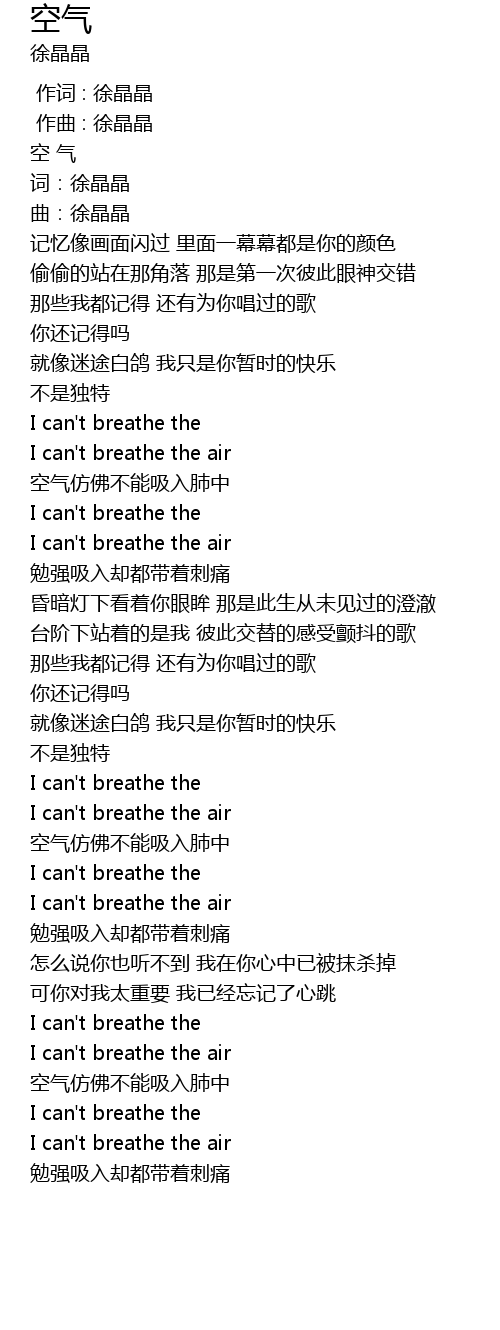 | [01:42.238] | I can' t breathe the air |
